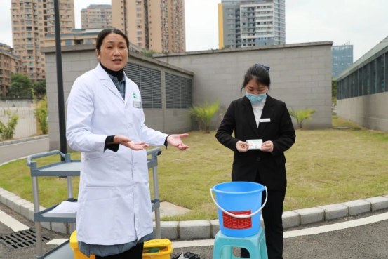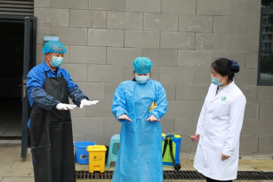 為進(jìn)一步提升全員疫情應(yīng)急處置的實(shí)戰(zhàn)能力,切實(shí)保障醫(yī)務(wù)人員、到院患者的醫(yī)療安全等,隨后進(jìn)行第三階段——防護(hù)用品穿脫、手衛(wèi)生、消毒液配置培訓(xùn)。